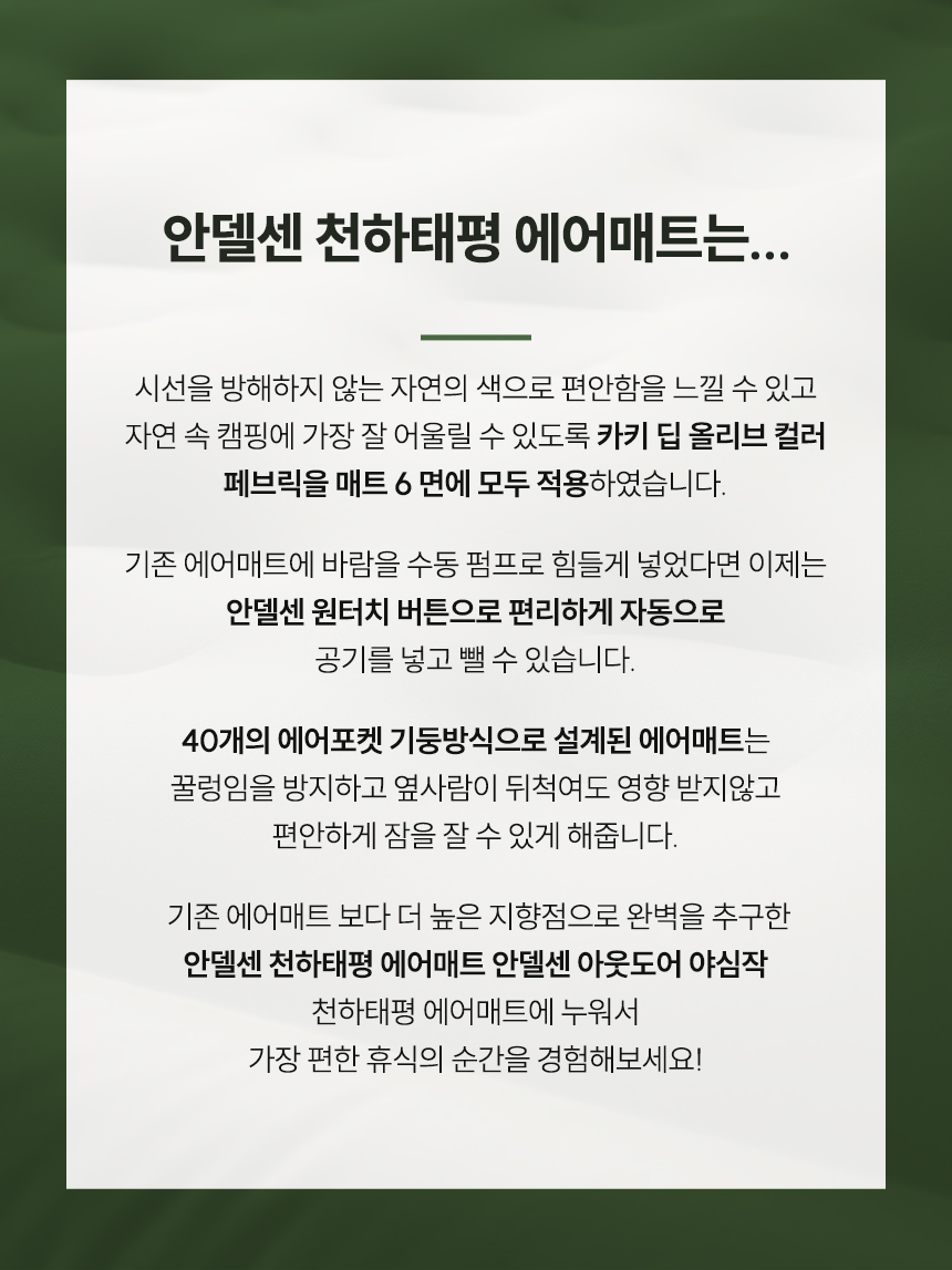 와디즈 프리오더 예약 판매 3800%달성안델센 천하태평 프리미엄 캠핑에어매트 출시!